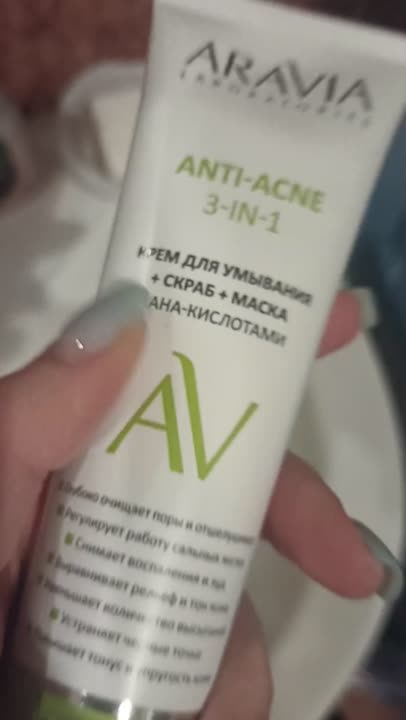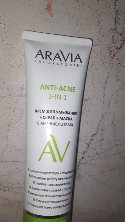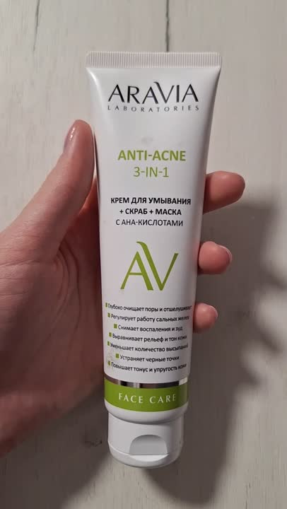 ARAVIA LABORATORIES Крем для умывания + скраб + маска с AHA-кислотами Anti-Acne 3-in-1, 100 мл
