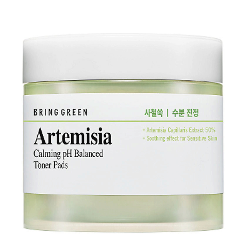 BRING GREEN Диски для лица успокаивающие регулирующие pH кожи с полынью Artemisia Calming pH Balanced Toner Pads, 75 шт.