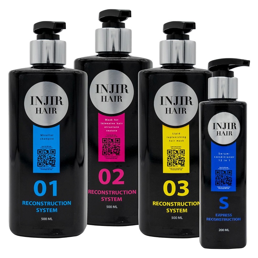 INJIR HAIR Комплекс восстановления кудрявых волос, 500 мл; 500 мл; 500 мл; 200 мл