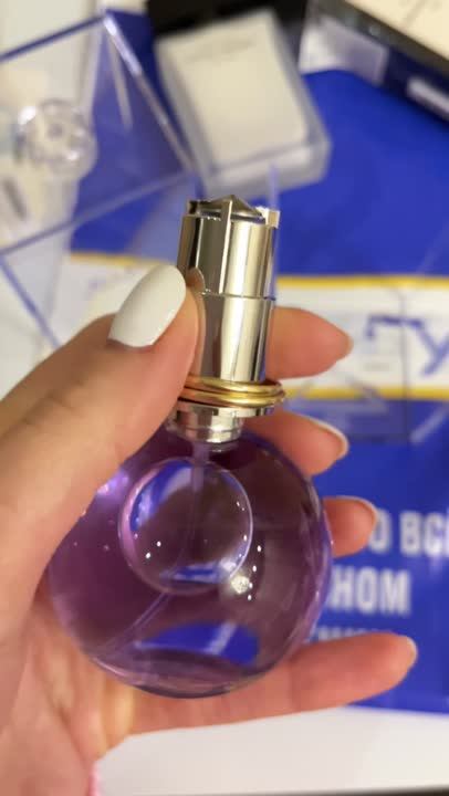 Природные экстракты призваны подчеркнуть естественное обаяние своей обладательницы, чувственность и эстетику ее вкусовых предпочтений. Лаконичный круглый флакон в стиле Ланвин выполнен в блестящем фиолетовом тоне с изящным сплетением обручальных колец на горлышке.