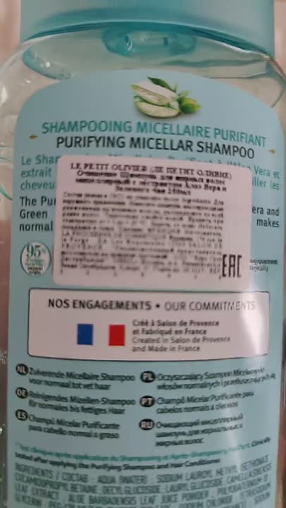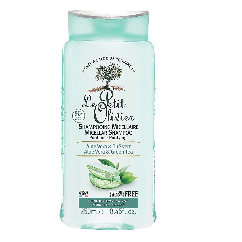 LE PETIT OLIVIER Шампунь для жирных волос мицеллярный с экстрактом Алоэ Вера и Зеленого чая Aloe Vera & Green Tea Micellar Shampoo, 250 мл