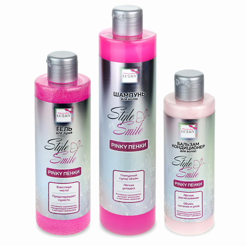 LUKKY Набор для ухода за волосами Style&Smile Pinky Пенки, 350 мл+ 250 мл + 200 мл