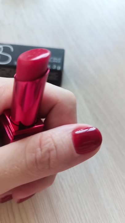 Футляр бальзама выглядит очень нарядно, крышка легко снимается и плотно фиксируется, не спадает, текстура кремо-гелевая,очень нежное, а от тепла губ немного подтаивает, расход у продукта экономичный, аромат присутствует, ну совсем лёгкий косметический, стойкость бальзама держится на протяжении двух-трёх часов, на губах смотрится прекрасно, рекомендую