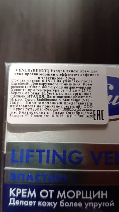 VENUS Крем для лица против морщин c эффектом лифтинга и эластином+, 50 мл